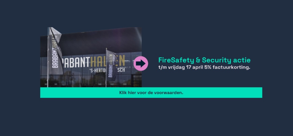 Deze week staat helemaal in het teken van de FireSecurity & Safety beurs in Den Bosch – en dat vieren we graag met jou! Van vandaag t/m vrijdag 17 april profiteer je van 5% factuurkorting op ons complete assortiment.